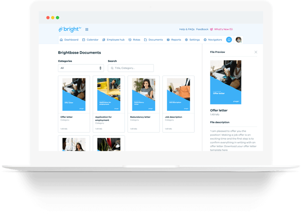 BrightHR’s handy online library gives you a ready-made set of HR and employment law documents at your fingertips—saving you time and effort.