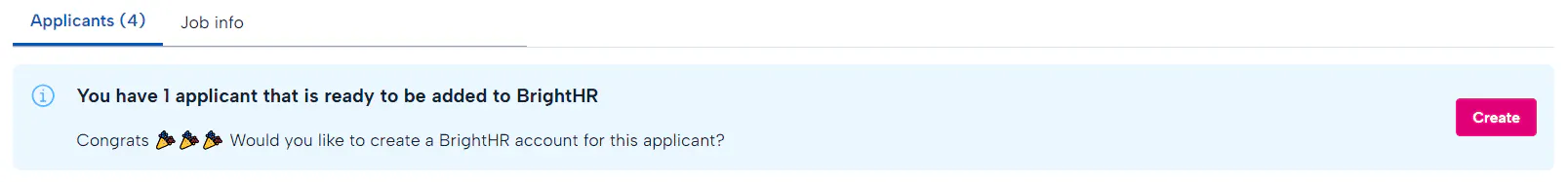 After you have updated them has having been sent the offer, you will be given the handy option to set them up on the BrightHR system tying the recruitment process to the beginning of employment.