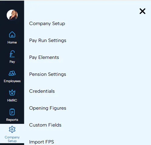 Ensure your company payroll settings, pay-runs and pension setup are configured.