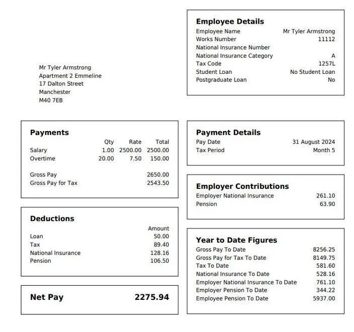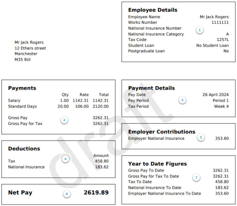 - Tax year to date National insurance (NI) both EE and ER contribution details.