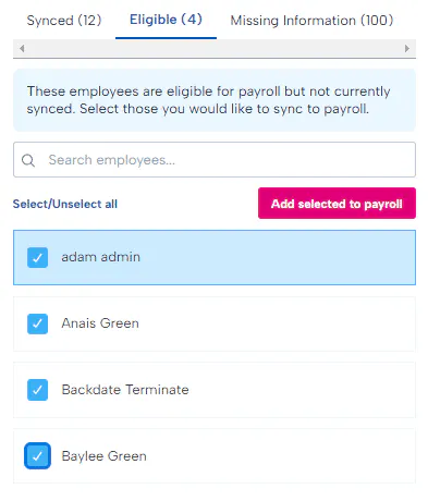 New Employees Added / synchronised to Payroll