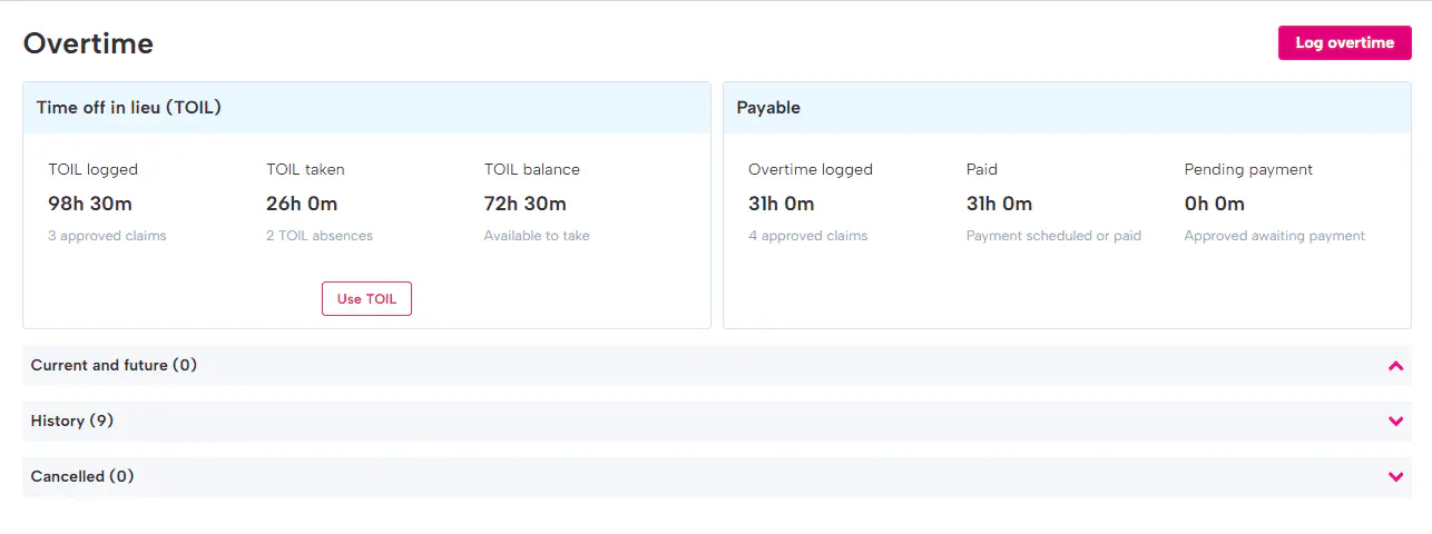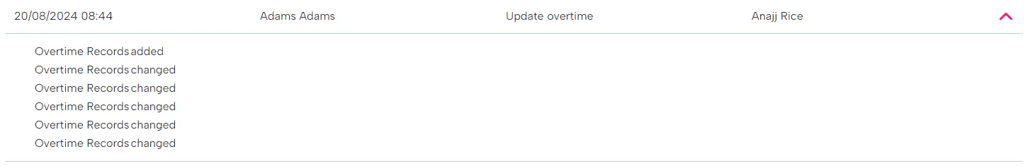 Employee absences and overtime payments that're added to payroll will also appear in your audit log, again giving you the dates it was processed, who added it and who it is for.