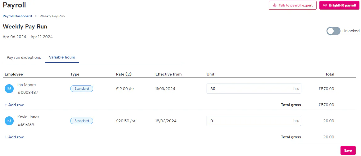 You can configure multiple schemes on BrightHR Payroll to suit different employee contracts specific for your business.