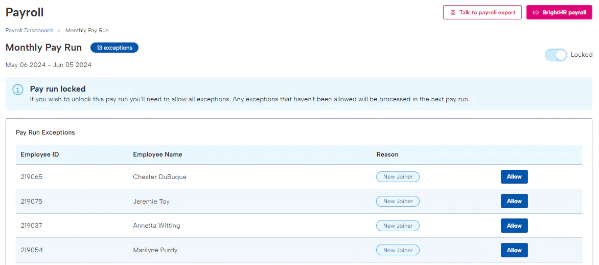 Key Features of BrightHR Payroll