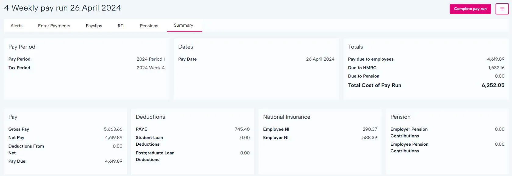 Once payment and deductions are added, you're ready to complete the pay run and issue payslips to your employees!