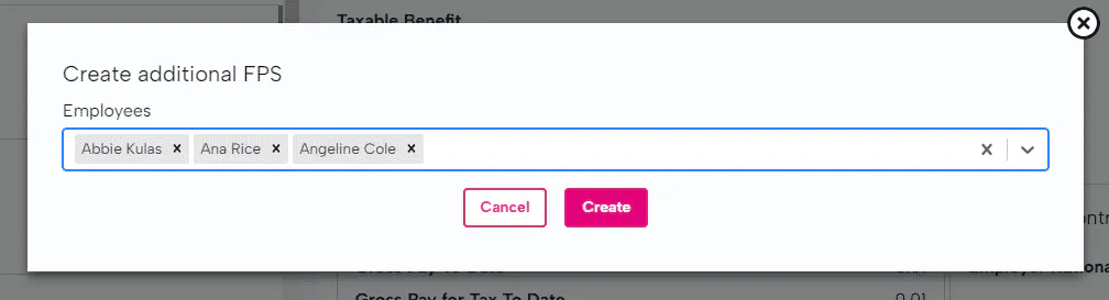 You can now select which of your employees you have made the adjustment for which will highlight on the additional FPS to HMRC which employees have been updated.
