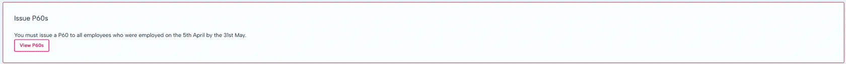 A P60 needs to be issued to your employees by 31st May.