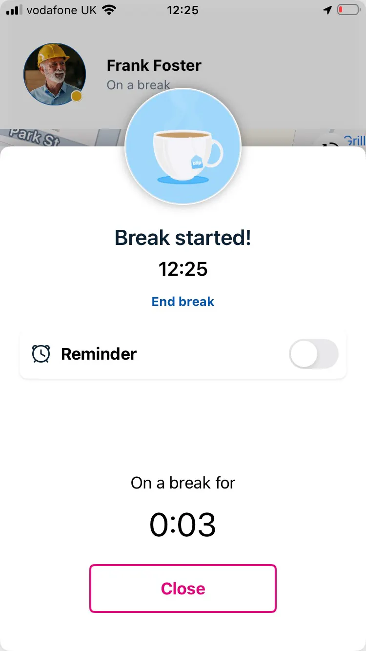 To start your break, tap the ‘Start break’ button at the bottom of your screen and select ‘End break’ once your downtime is over. It’s that easy!