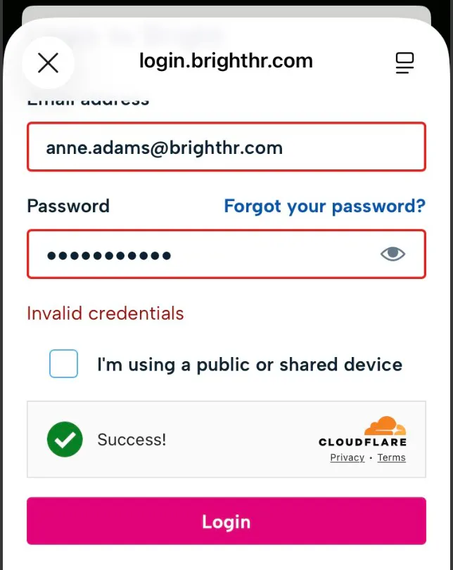 - An incorrect email - On BrightHR, you will store a potential of 2 different email addresses, a work/account email, and a personal email. It can be easy to get these mixed up so always try to use both and if you're really unsure, get your employer to check for you!