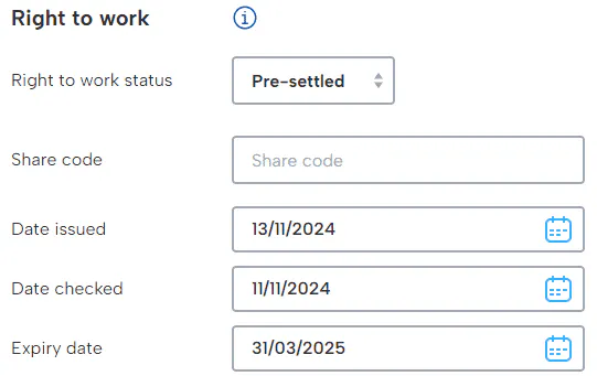 These fields only apply to EU and overseas workers. Information can only be recorded if volunteered by the employee.