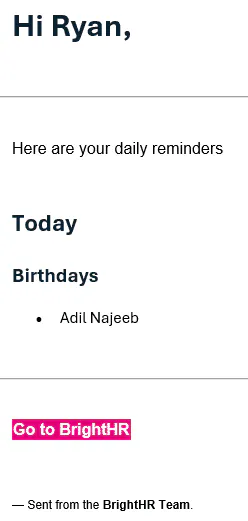 If a date of birth has been entered with at least 7 days in between the current date and the employees birthday, a notification will be sent to remind you!