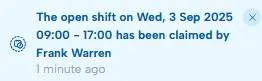 When an open shift is claimed by an employee