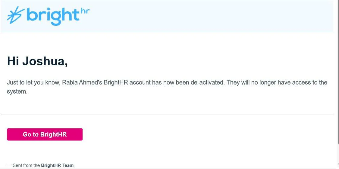 After an employee has been terminated either by yourself, an other admin or manager, you will receive a notification.