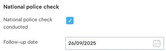 A national police follow-up date can be set. This can be found under the sensitive information section in the employment tab.