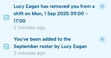 Whenever a change is made to a shift you're assigned to, you will receive a notification. This only applies to rosters that have been published.