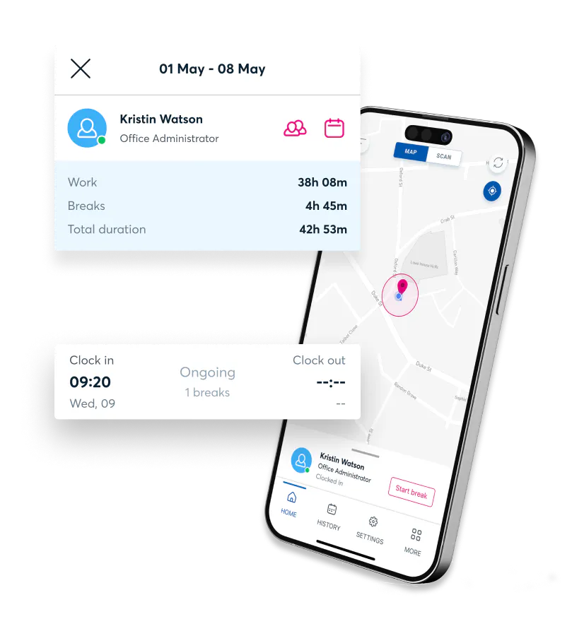 Take full control of your workforce with customisable geofence settings. Define precise boundaries for clocking in and out to ensure your employees are where they need to be.